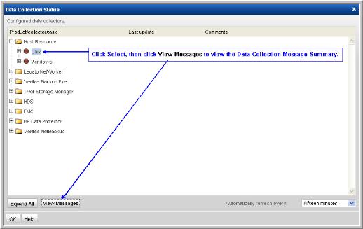 NOTE: Currently, messages are available only for EMC NetWorker, HP Data Protector, and Storage Viewer for Capacity Host Resources. Therefore, the View Messages button will not be accessible for other types of messages.