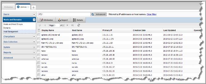 You can select hosts in bulk and assign or modify attributes associated with them. Use basic or advanced search to create a results set with the hosts you’d like to modify. For example, you can create a search query to find all Windows 2008 R2 systems as reported by NetBackup. When the search results are displayed, you can quickly apply a custom attribute such as patch applied.