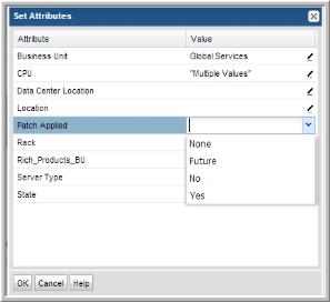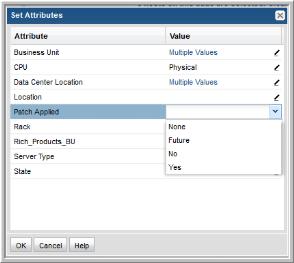 4. Click Attributes. The Set Attributes dialog allows you to set or modify an attribute (or multiple attributes) for all the hosts selected. If different attributes’ values are set for the selected hosts, the value displays “Multiple Values”.