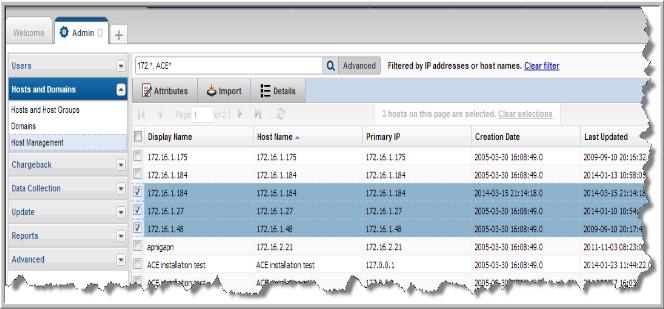 3. Select Hosts. You can select all the hosts on a page by clicking the checkbox on the top of the management page. Note, only all the hosts displayed on a single page are selected.