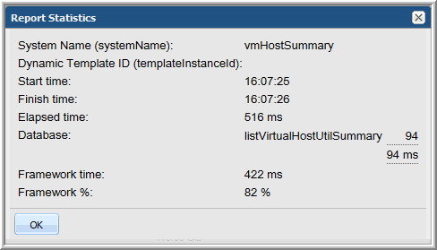 If a report seems to take a long time to render the results, use CTRL+ALT+T in the active browser window of the rendered report. These elapsed time and database statistics may be useful to someone troubleshooting a report.