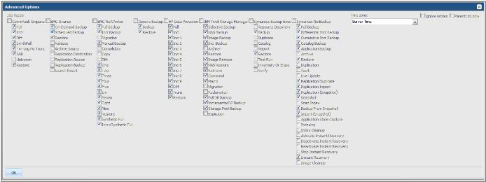 Job Types | Refers to the type of backup job. Each backup product has its own set of job types. The list represents the products for which data collection has been licensed for your Portal. Check the job types to be included in the report output. |