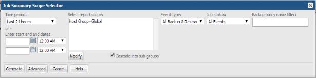 The scope selector is unique to the report you are generating, displaying only the parameters that are relevant to the specific report.