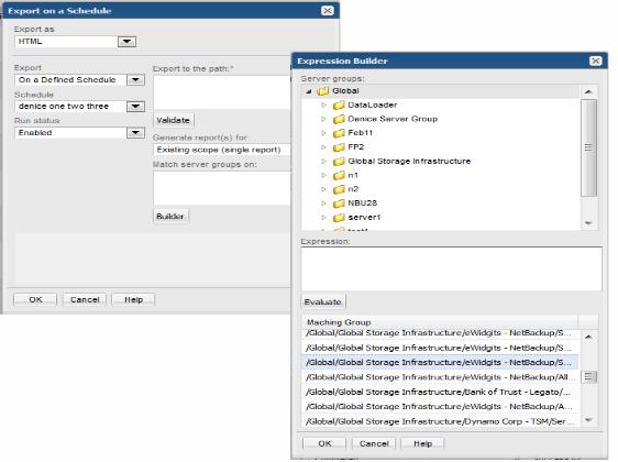 Export to the path* | FOR ADVANCED USERS: In some cases (for example, Managed Services Providers with hundreds of managed host groups), you may want to export to specific host group or report directories. Rather than configure each of these separately, you can use the following variables in the path specification to generate an individual report for each instance of the variable: ${hostGroup} For example: /opt/aptare/export/${hostGroup}/doc ${reportName} To over-write/replace files each time the reports are exported, use the variables: ${day}, ${month}, ${year}, ${hour}, ${minute} where the day, month, year, hour, and minute are represented as 2-digits, such as 02. For example to create a unique filename, enter: ${month}-${year}-${hour}-${minute} |