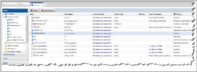 Explorer to view sharing status associated with reports and folders. For report and folder creators, this information can be useful to determine the impact of stopping the sharing, modifications to the report, or deletion. Shortcuts cannot be shared.