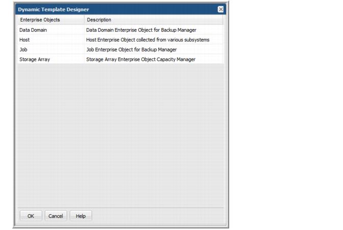 2. In the Enterprise Object Selector window, select the object for which you want to design a report template—