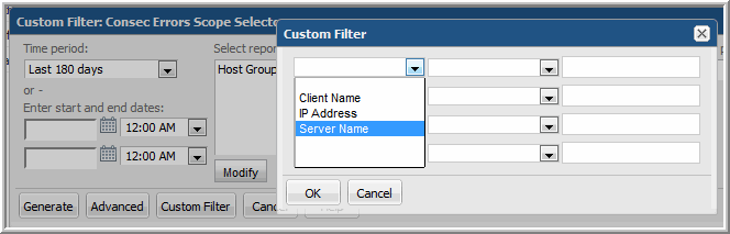 Consecutive Error | Enable specification of the number of consecutive errors logged for the object, within the report's timeframe. |