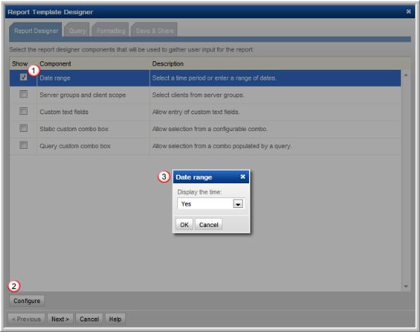 Check this component to include a a Time Period and Data Range selector in the report’s Scope Selector that is displayed when generating the report.