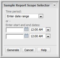 When you create a report template, you must also determine what elements should be provided in the report’s Scope Selector—the interface that enables the user to specify the scope of the data to be displayed in the report. Each time a report is generated from the report template, the Scope Selector enables selection of parameters to be used for report generation.