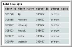 Note that the column header “client” was substituted for the field name, as specified in the query. You can specify similar substitutions using the Formatting window in the SQL Template Designer.