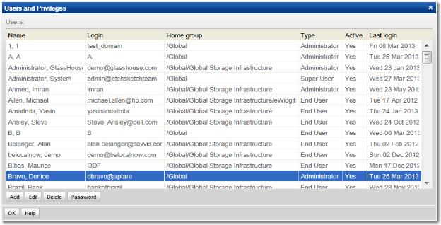 Users and Privileges. The window displays all Portal users.