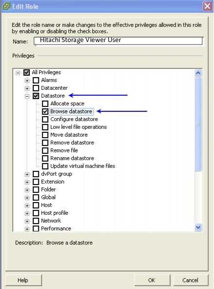 7. The only permission that is required beyond the Read-Only role is Browse Datastore. Select Browse Datastore and click OK.